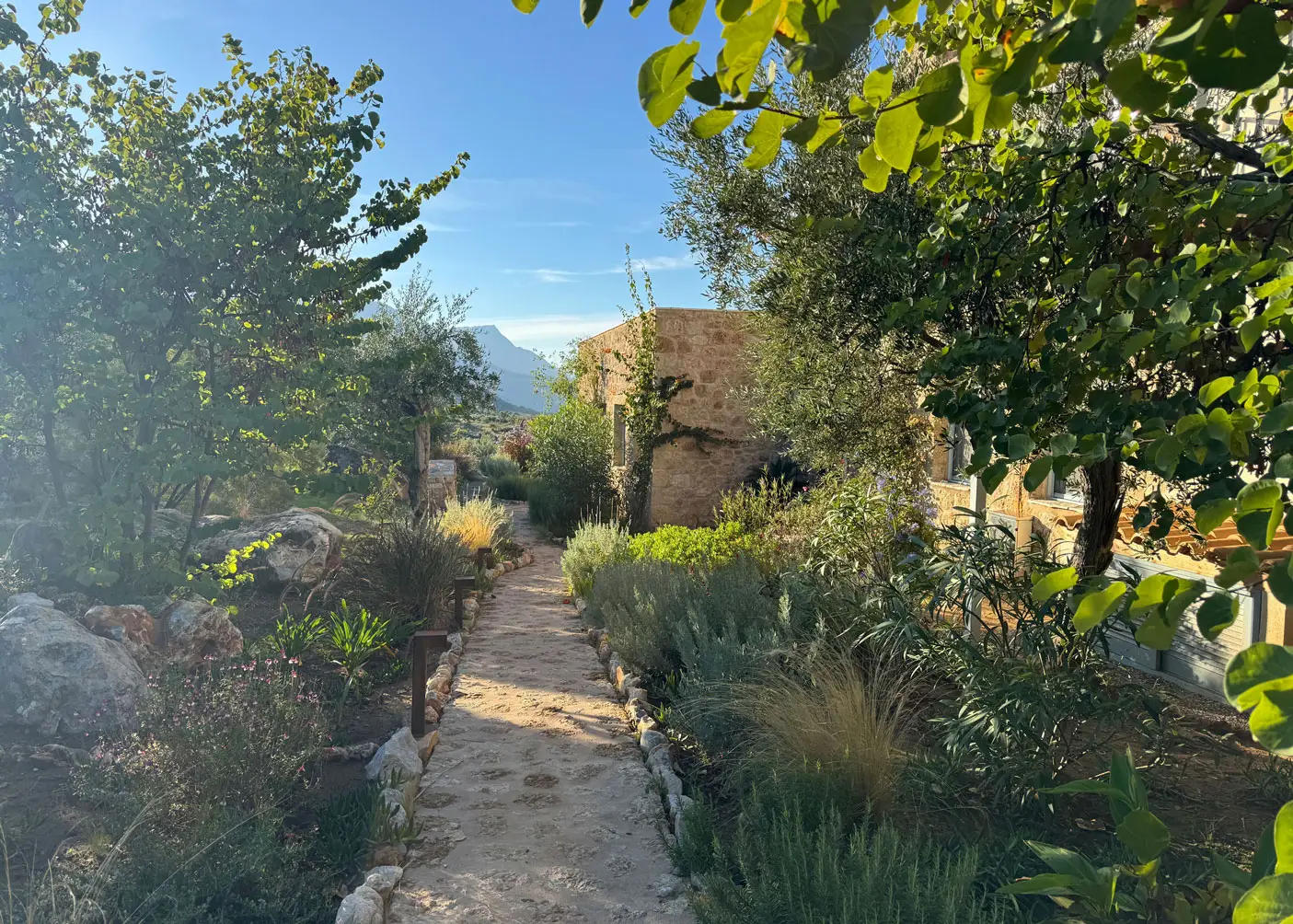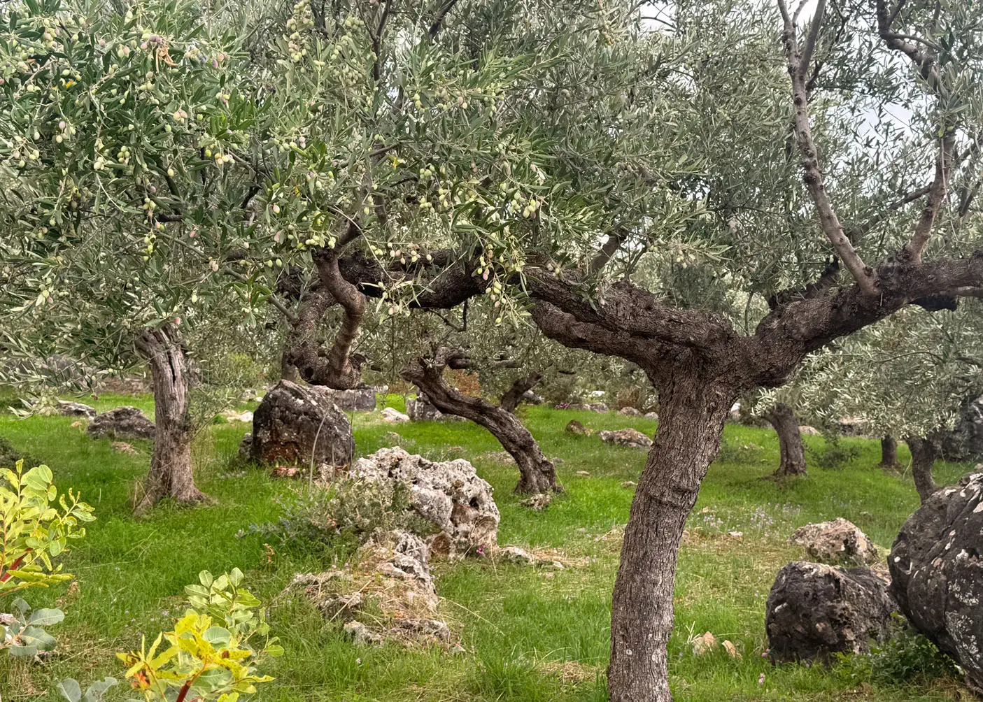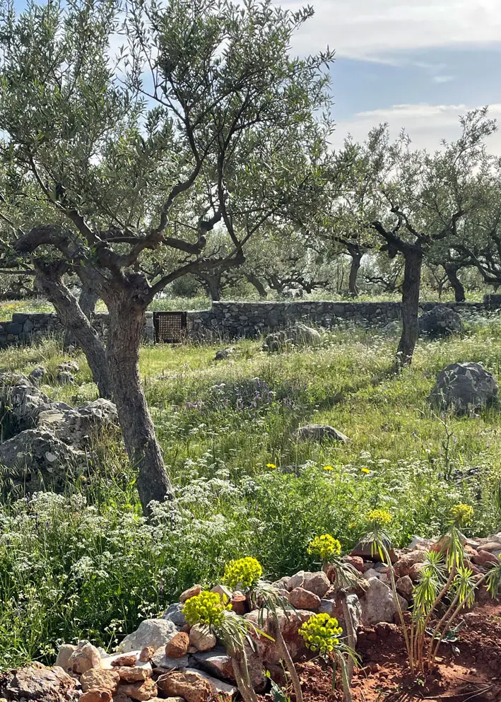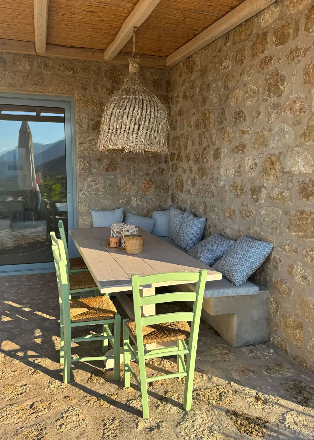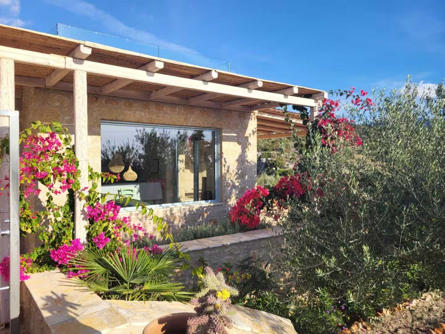 Logo von The Mulberry, ein Ferienhaus in Griechenland, Mani. Es zeigt einen stlisierten Maulbeerzweig und den Schriftzug 'The Mulberry, Mani Greece'.