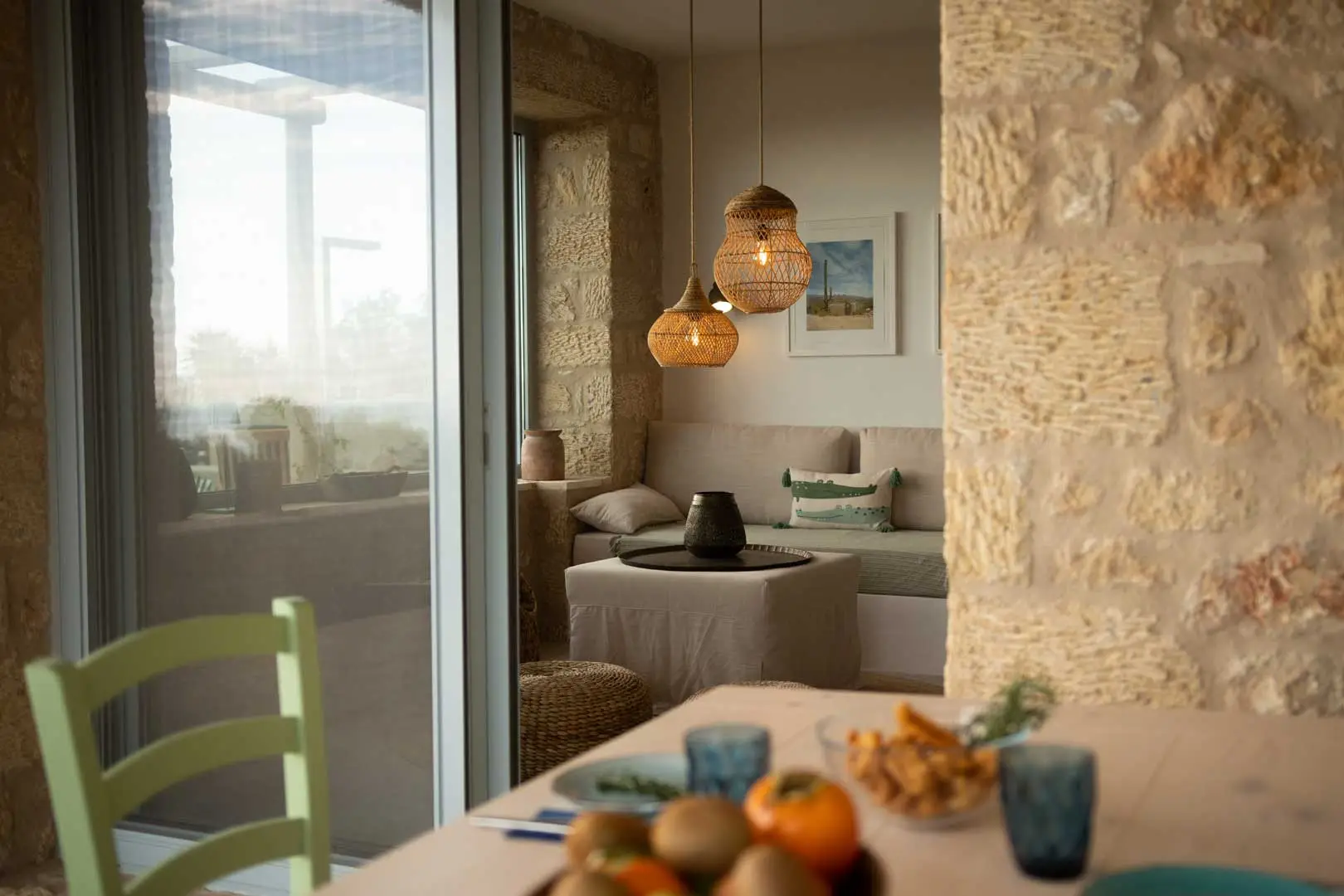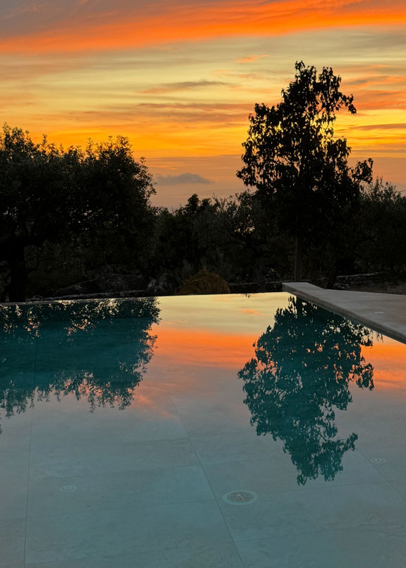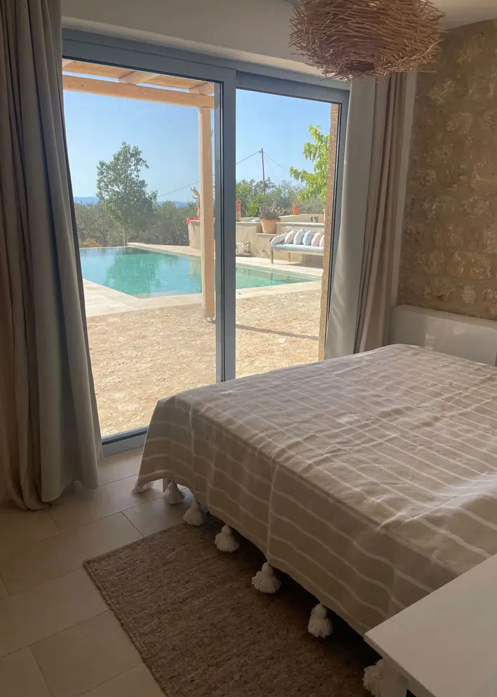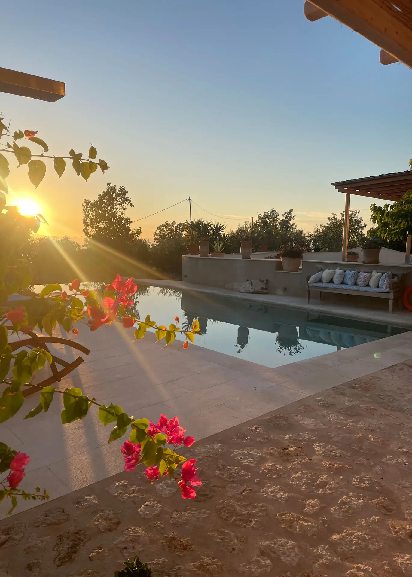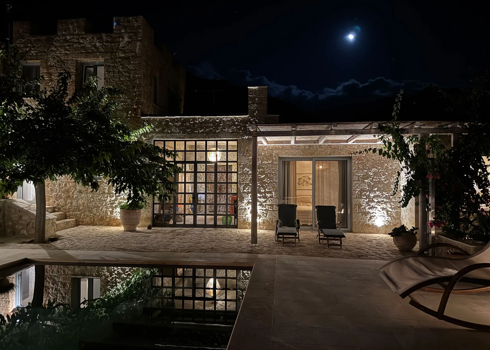 Logo von The Mulberry, ein Ferienhaus in Griechenland, Mani. Es zeigt einen stlisierten Maulbeerzweig und den Schriftzug 'The Mulberry, Mani Greece'.